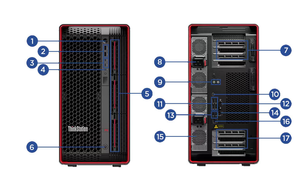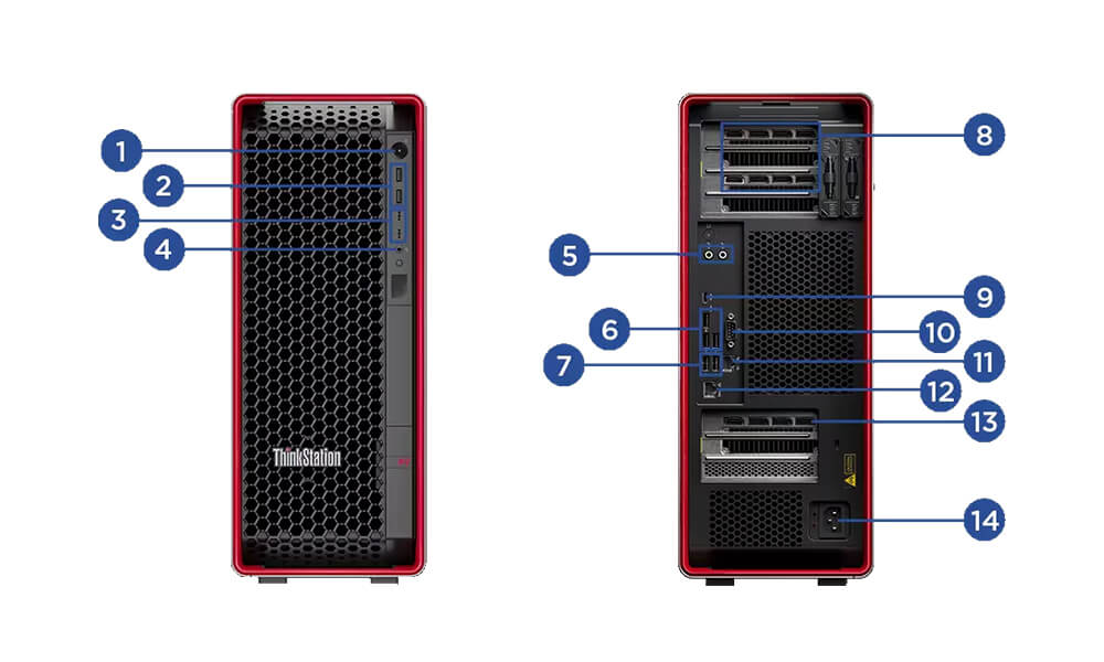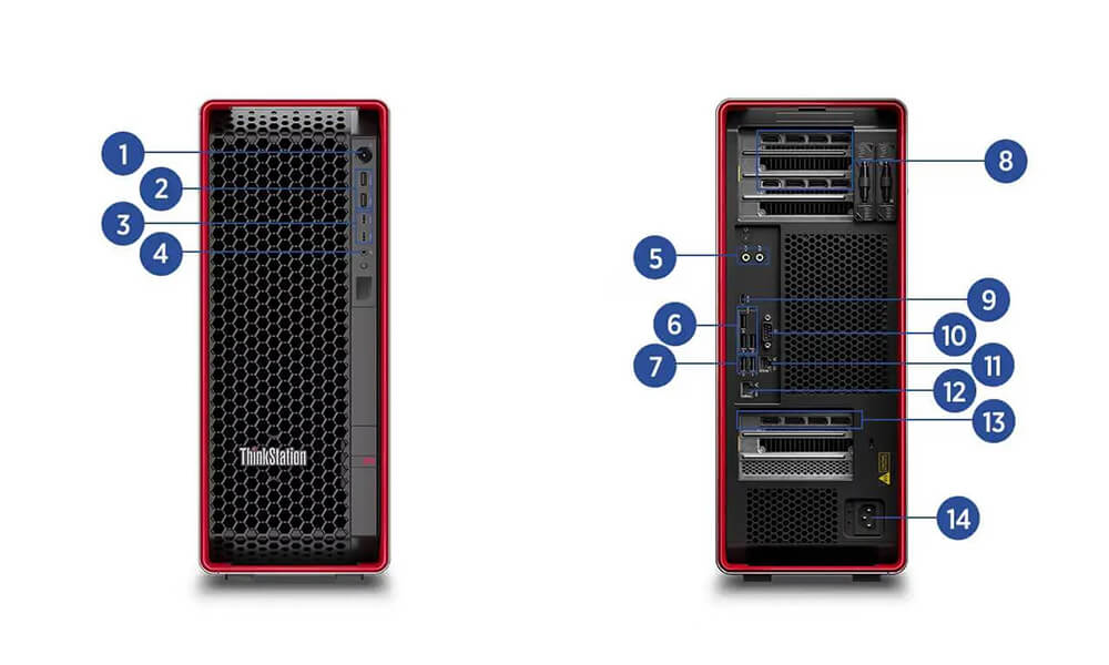 | ThinkStation P5 (Intel) | ThinkStation P7 (Intel) | ThinkStation P8 (AMD) | ThinkStation PX (Intel) | |