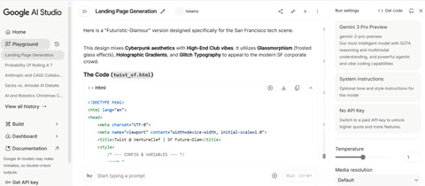 Gemini 3 Proはアプリとクラウド「Google AI Studio」(下の写真)で使うことができる。