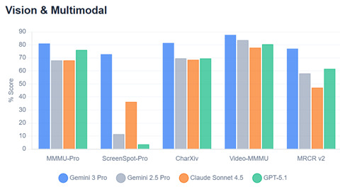 Gemini 3はマルチモダル機能が強化され全てのベンチマークテストで競合他社のモデルの性能を上回った。