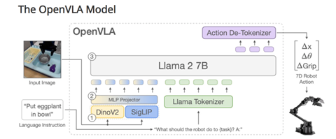この手法は「VLA (Vision-Language-Action)」モデルと呼ばれ、ビジョン(カメラの映像)と言語(人間の命令)をAIモデルが考察し、アクション(デバイスを操作する機械命令)を生成する仕組みとなる。