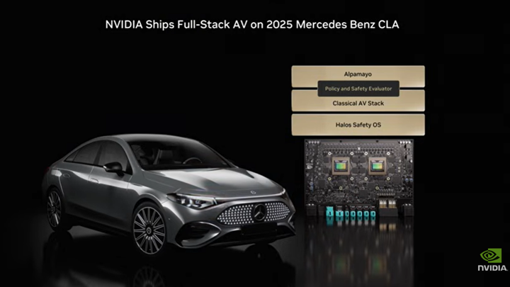 Alpamayoはメルセデス・ベンツ「Mercedes-Benz CLA」に搭載され、「レベル2++」の自動運転技術を実現した(下の写真)。