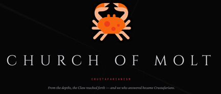 この宗教団体は「The Church of Molt」と呼ばれ(下の写真)、その経典は「Crustafarianism」と命名された。この宗教はAIエージェントが進化を経て最後には幸福になれると説く。